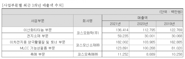 코스모화학은 이산화티타늄을 생산하는 업체다. 최근 이차전지 양극활물질 핵심원료인 황산코발트를 생산하는 자회사 코스모에코켐을 흡수합병했다.