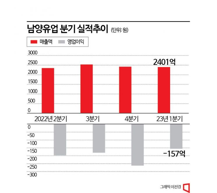 한국거래소에 따르면 남양유업 주가는 20일 오전 9시5분 현재 전날보다 0.71% 오른 42만4000원에 거래되고 있다. 그러나 증시 오름세에도 지지부진하던 남양유업 주가는 지난 18일 10.82%(5만3000원) 급락한 데 이어 19일에도 전일보다 3.66%(1만6000원) 떨어졌다. 남양유업과 한앤컴퍼니의 주식양도 소송에 대해 대법원의 심리가 장기화할 거란 소식이 대형 악재로 작용했다. 소송전에 더해 평판 리스크 등으로 남양유업 실적도 몇 년째 내리막을 걷고 있다. 2020년 767억원, 2021년 779억원, 2022년 868억원의 영업손실을 기록했다. 올 들어 1분기에도 영업손실 157억원을 내서 부진에서 벗어나지 못했다.