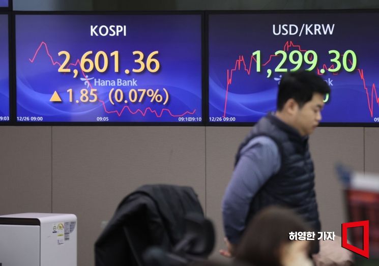 26일 서울 외환시장에 따르면 오전 9시 30분 기준 원·달러 환율은 전 거래일 종가보다 4.1원 낮은 1298.9원을 기록했다. 이날 환율은 전 거래일 종가보다 4원 내린 1299원에서 출발한 뒤 1300원 부근 좁은 폭에서 움직이고 있다. 미국을 비롯해 주요국 금융시장이 크리스마스 연휴 휴장을 맞은 가운데 시장의 경계를 부르는 특별한 이벤트도 없어 거래가 활발하지는 않은 상황이다.