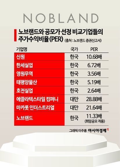 회사 관계자는 "노브랜드의 주요 고객은 글로벌 브랜드사"라며 "99% 수준의 매출이 북미를 비롯한 해외에서 발생하고 있어 주된 경쟁시장이 국내에 국한되지 않는바, 국내뿐만이 아닌 해외에서 유사한 사업을 영위하고 있는 상장사를 모집단으로 검토하는 것이 바람직하다고 판단된다"고 설명했습니다.