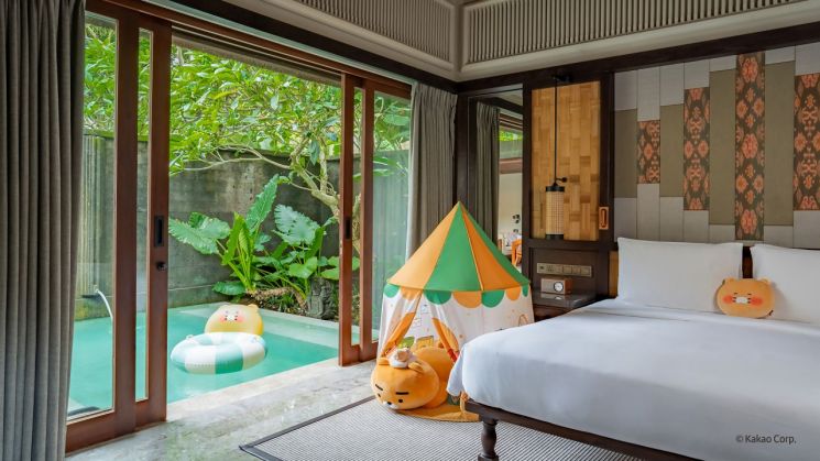 카카오프렌즈는 지난달 하얏트의 럭셔리 호텔 브랜드 안다즈와 협업해 안다즈 발리에서 특별 패키지 '카카오프렌즈 인 발리'를 선보였다. 가든 풀 빌라 객실을 카카오프렌즈 캐릭터 상품과 특별 제작된 어메니티로 꾸며 색다른 경험을 제공한다.