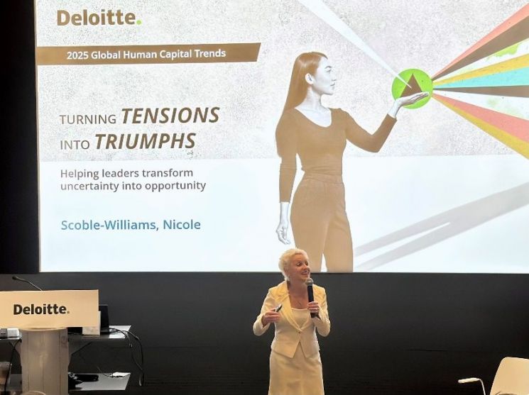 지난 26일 ‘2025 글로벌 인적자본(Human Capital) 트렌드 세미나’에서 딜로이트 컨설팅 글로벌 Future of Work 리더인 니콜 스코블 윌리엄스(Nicole Scoble-Williams)가 강연을 진행하고 있다. 딜로이트 컨설팅 코리아