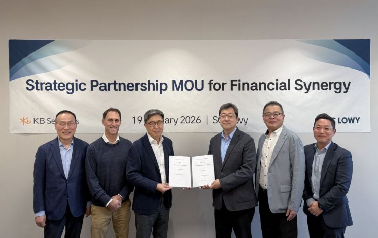 KB증권은 지난 19일 글로벌 투자사 SC로위(SC Lowy)와 부동산과 기업금융 분야에서 금융 시너지를 창출하기 위한 전략적 업무협약(MOU)을 체결했다고 29일 밝혔다.